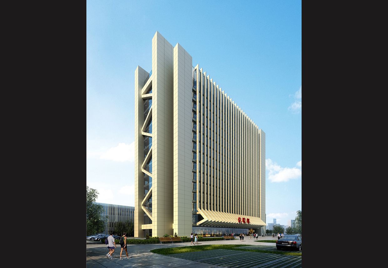 二期病房楼东西向延伸作为一期病房楼功能和南向沿街展示面的补充。