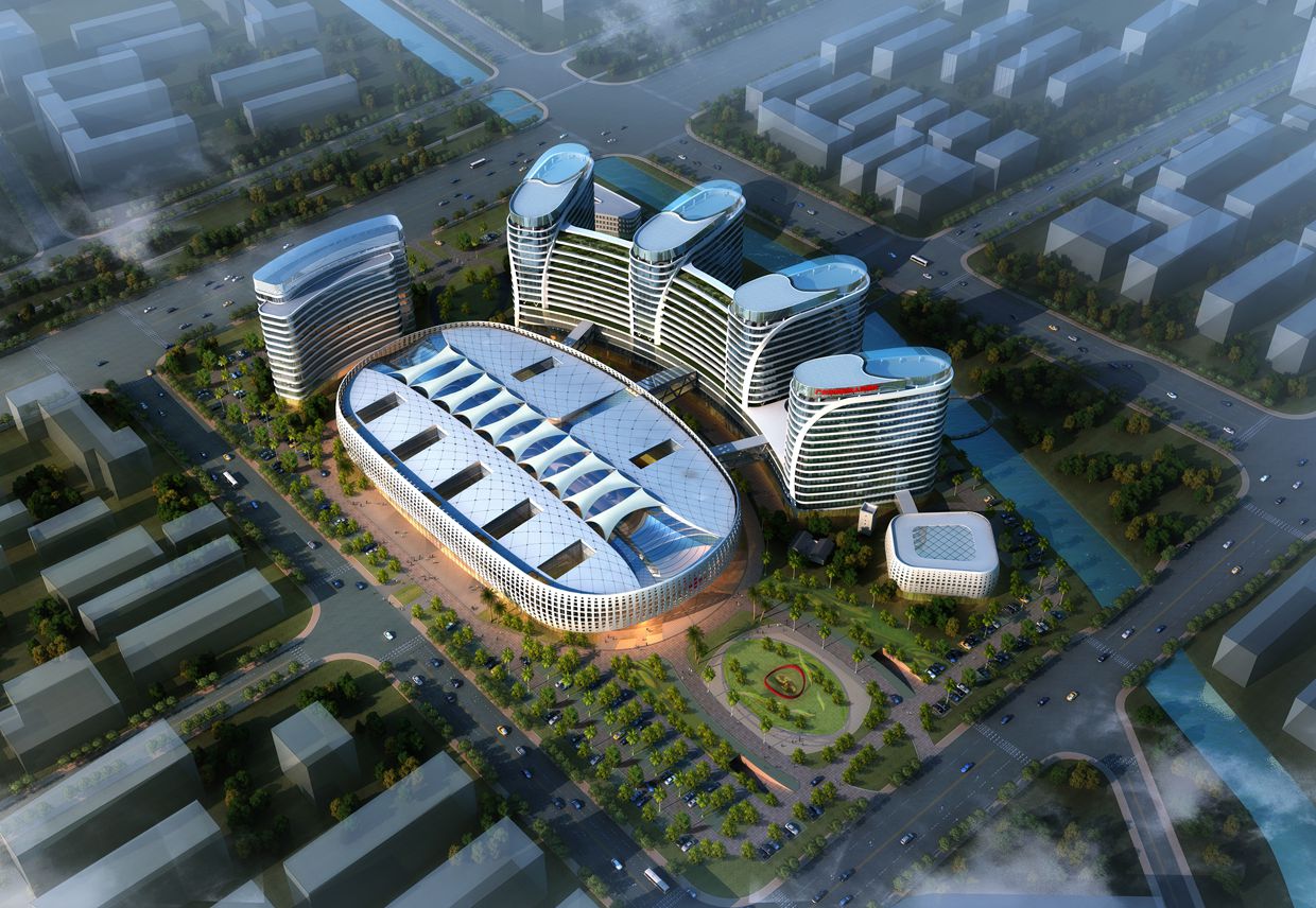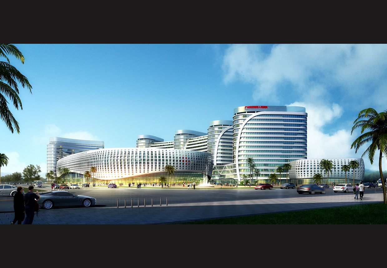 方案功能分区设计明确清晰,门诊、医技、病房三者呈夹心式布局,办公教学区设于病房楼南侧,各功能联系方便快捷。门诊置于西侧,可迎合由城区过来的人流,病房置于东侧,既远离了噪声,又为病房创造了良好的沿河景观。病房楼设于基地东侧并沿河展开,这样病房楼既远离西、北侧的商业和城市干道,减小噪音干扰,又将东侧的自然景观引入到病房,同时病房楼沿街展开,创造良好的城市形象。基地内有两栋保留文物建筑,通过我们设计,将原有两栋保留建筑置于门诊广场旁边的绿地之中,并结合景观将其完美的融合到院区之中。院区中央设置贯通南北的绿化景观带,使得院南北广场串联起来,并与保留的廷仲书舍形成对景,从而创造出更加丰富的空间环境。