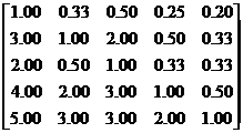中,主对角线上的值都为1,且一个值与该值的倒数关于主对角线对称,即
