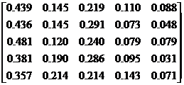 由于各指标往往具有不同的量纲,且数值差距较大,若直接对特征量矩阵进行计算的话,计算困难且可能对决策结果产生影响,因此,需对特征量矩阵进行无量纲化处理。具体的方法为特征量矩阵中的各行向量同除去该矩阵中的任意一个行向量,即得到的无量纲化矩阵为某一行向量值全为1的矩阵
